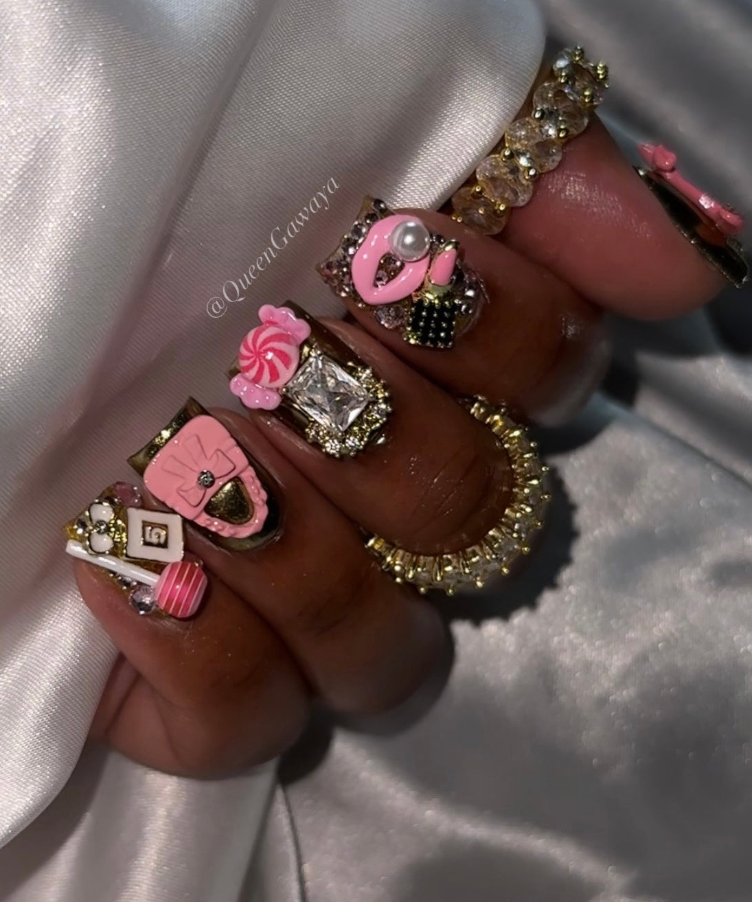 Sweet on the surface, powerful at the core. Candy Cartel blends playful pink candy charms with bold gold accents and luxe crystal details for a statement set that screams money, confidence, and main-character energy. Designed for the woman who looks sweet but runs everything, this handcrafted luxury set delivers soft glam with a dangerous edge.