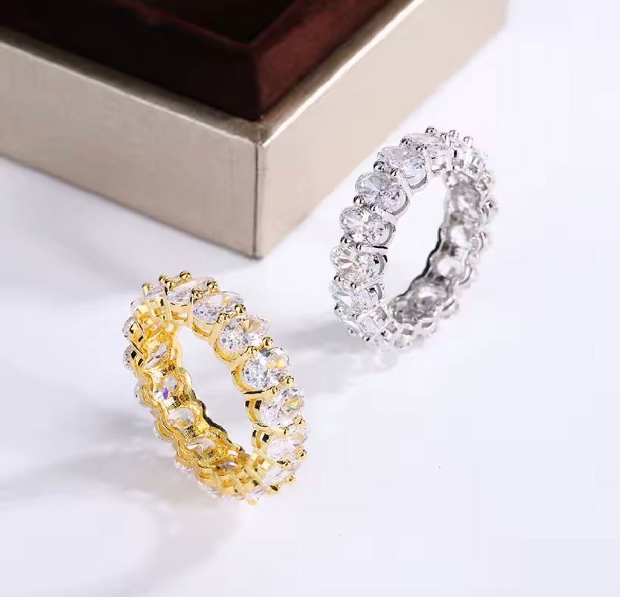 Meet Ovella — a timeless oval eternity band designed to radiate elegance and soft luxury. Featuring perfectly set oval-cut stones that wrap gracefully around the band, Ovella delivers nonstop sparkle from every angle. This piece is feminine, refined, and effortlessly chic, making it perfect for stacking or wearing solo as a statement of love and confidence.